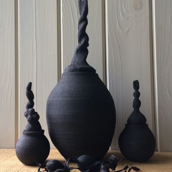 sculptural ceramics related to Bladderwrack seaweed, and sea water/waves patterns